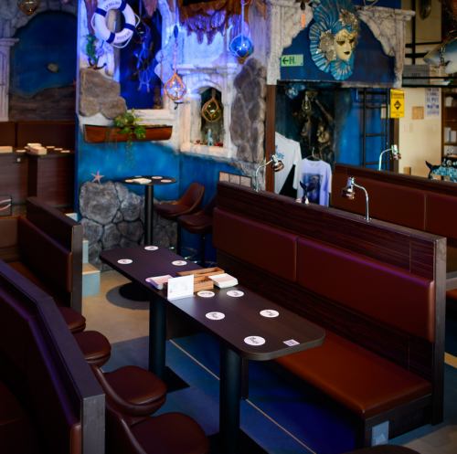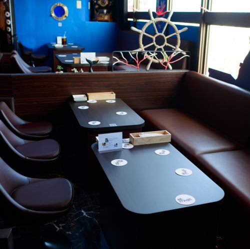 ゆったりテーブル席や、少人数にも丁度良いお席をご用意してお待ちしています。海を感じるワクワクする空間や、ショータイムの熱気をお楽しみください★