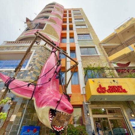建物入口の大きなサメが目印!記念の1枚をどうぞ♪